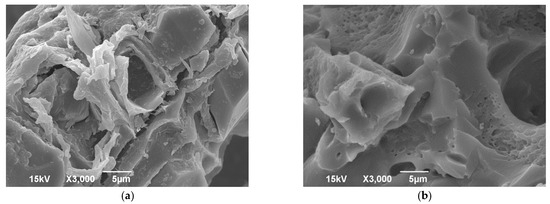 Scanning electron microscopy (SEM) of (a) PWS and (b) mPWS.