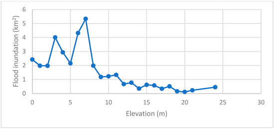 Moreover, Figure 6 illustrates that the flooded regions are primarily concentrated in areas with elevations ranging from 0 to 8 m. These findings emphasize the critical role of slope and elevation in understanding and mitigating flood vulnerabilities in the region.