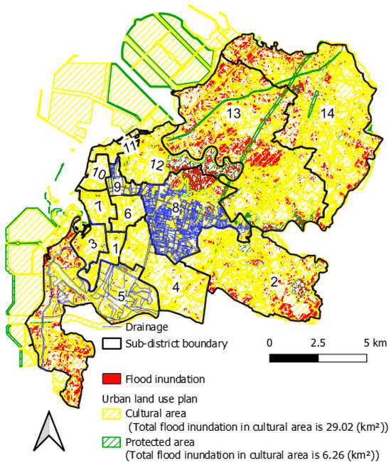 3.4. Flood Inundation Area and Urban Land Use Plan