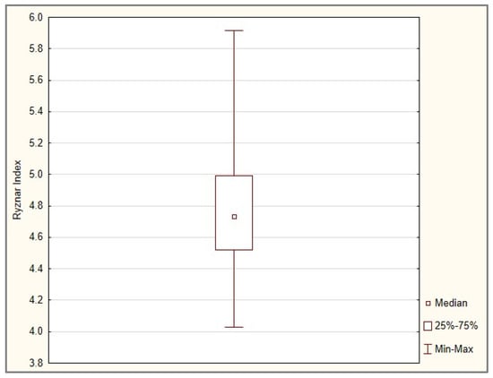 | Chemical stability of the water supplied by the network * | 8 | low water is chemically stable with the following parameters: Langelier saturation index IL = 0, or Ryznar index IR = 6.2–6.8, or Strohecker index Ist < 0.5) [73,74,75] | medium mild corrosion, does not produce protective CaCO3 layers, with the following parameters: Langelier Saturation Index IL = −3 to 4, or Ryznar Index IR = less than 8.5, or Strohecker Index Ist > 0.5, except when there is low susceptibility (Langelier Saturation Index IL = 0 and Ryznar Index IR = 6.2–6.8) and high susceptibility (Langelier Saturation Index IL = 3 to 4 and Ryznar Index IR = less than 5.5) [73,74,75] | high rapid corrosion, does not produce protective CaCO3 layers, with the following parameters: Langelier Saturation Index IL = −4 to −5, or Ryznar Index IR = more than 8.5 and less than 5.5 or Strohecker Index Ist > 0.5, or Langelier Saturation Index IL = 3 to 4, or Ryznar Index IR = less than 5.5, or Strohecker Index Ist > 0.5 [73,74,75] |