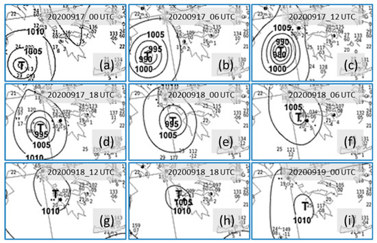 Medicane’s PMSL analysis (a–i) extracted from the synoptic analysis that is publicly available from the German Weather Service (DWD) in 6 h intervals (© 2023 Deutscher Wetterdienst).