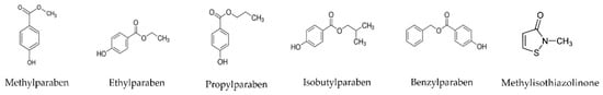 Preservatives, particularly parabens, are among these contaminants of concern due to their extensive use and toxicity; they are a group of chemicals that are used as preservatives in cosmetics and other products and that have been shown to be harmful to the environment. Parabens are esters of 4-parahydroxybenzoic acid (PHBA) and are antimicrobial preservatives used in cosmetics, pharmaceuticals, and prepared foods [9,10,11]. The high toxicity levels of these compounds are related to their potential endocrine disrupting properties, which pose a serious threat to the environment. Recently, several authorities have stressed the urgency of regulating the use of these substances and the need to look for alternative preservatives that do not have these negative environmental effects [12].