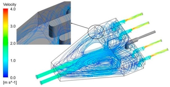 - Kim, C.G.; Choi, Y.D.; Choi, J.W. A study on the effectiveness of an anti vortex device in the sump model by experiment and CFD. IOP Conf. Ser. Earth Environ. Sci. 2012, 15, 072004. [Google Scholar] [CrossRef]