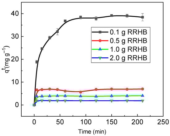 Figure 4 presents the sorption capacity of the RB on/in the RRHB with variations in the sorption time and biochar mass.