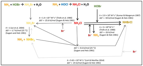Meanwhile, NH2Br may disproportionate reversibly in a base-catalyzed reaction [31]: