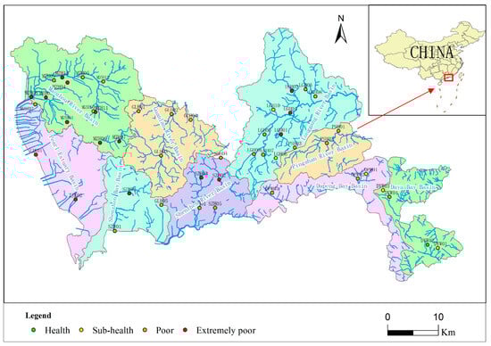 River ecological health is the foundation of urban ecosystem service supply and water ecological civilization construction, which is of great significance to urban sustainable development [1]. A healthy river ecosystem should have reasonable organizational structure and good operational function. It can exert elasticity and stability against sudden natural or man-made disturbances. In recent years, with intensive human activities, resource overexploitation and environmental pollution, urban river ecosystems in mega-cities, such as Shenzhen and Shanghai, have been greatly stressed. The integrity of aquatic ecosystems has been seriously damaged, aquatic species have decreased, and river health has shown a trend of degradation, causing a series of “urban stream syndrome” incidents [2,3,4]. The “Act Plan for Prevention and Control of Water Pollution of China” clearly states that we must make every effort to ensure the safety of the water ecological environment, protect the aquatic ecosystem, improve aquatic biodiversity, and strive to restore the national aquatic ecosystem functions by 2030. However, for cities, restoration measures such as improving habitat conditions in urban rivers, reducing pollution discharge, and improving water quality are not enough to restore the river ecosystem. The integrity and health status of restored ecosystems deserve to be paid great attention [5].