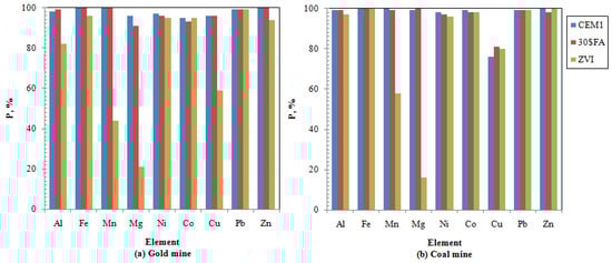 An investigation of the potential use of innovative permeable concrete in the removal of different heavy metals was conducted []. In comparison with conventional permeable concrete, the innovative permeable concrete was found to have higher removal performance, and this increase is contaminant specific, e.g., Cd (18.75%), Pb (17.91%), Cu (25.07%), and Cr (39.18%) []. This performance was further increased by increasing the substitution of GBFS with red mud due its fine particle and high surface reactivity [].