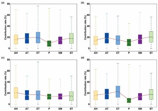 Finally, the contribution rates of each climate factor to VHI were calculated: