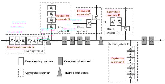 Schematic of the topological relationship between the compensated reservoirs group and the aggregated reservoirs in the upper reaches of a basin.