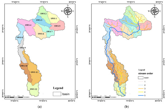 Horton [64] established a stream ordering approach and quantified the structure of a drainage basin stream system. Horton’s ordering scheme was revised by Strahler [65], and this method was preferred because of its simplicity and lack of subjective views. The streams were arranged in the following order: