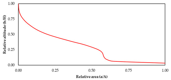 where H = maximum elevation in the basin (km) and h = minimum elevation in the basin (km).