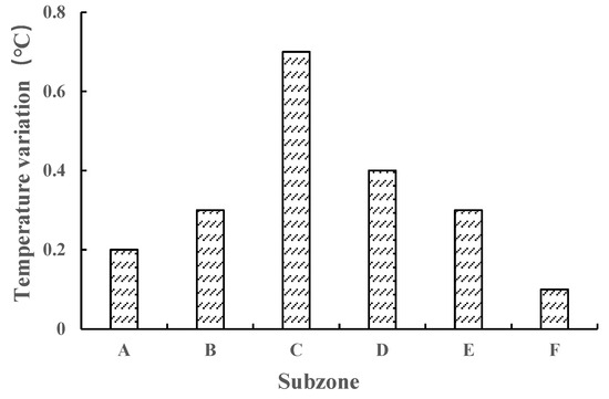 Compared with the period of 1961–1990, the variation of winter temperature in six zones of the YRB during the period of 1991–2010.