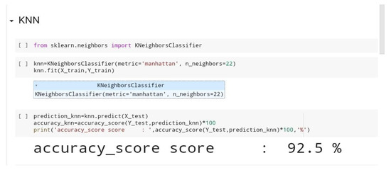 KNN classifier: It is a non-parametric lazy learning method, which means it does not assume anything about how the data are distributed and does not need a training phase. In KNN classification, a new data point’s class is predicted using the training data’s k-nearest neighbor’s classes. A user-defined hyperparameter called k controls how many neighbors are considered. The algorithm determines the distances between each new data point and every other data point in the training set to categorize it. Then, it chooses the k-nearest data points and determines the new data point’s class based on the dominant class of the chosen neighbor. The following figure shows the accuracy of the ANN model using the KNN classifier. But in the case of the LSTM model, we have found the accuracy of the model using the DT classifier as shown in