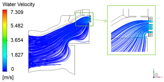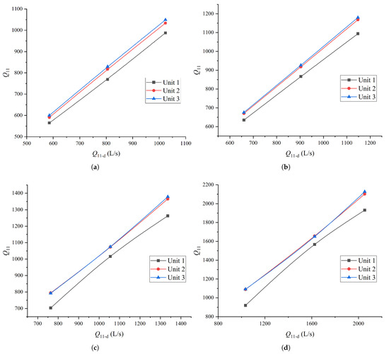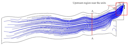 - Due to the influence of the layout position of the left bank unit, there is a significant deviation of streamlines near the inlet of Unit 1, which is significantly different from the normal flow at the inlet of Unit 1 under ideal conditions. As a result, the flow rate of Unit 1 under the same water level conditions is significantly lower than that of Unit 2 and Unit 3.