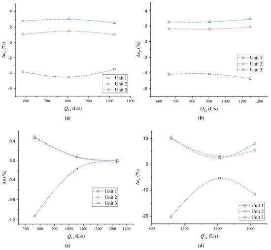 - Comparing the output of three units on the left bank under different water level conditions, it is found that the decrease in output of Unit 1 compared to the design value is greater than 3%, and even reaches 20% under low water level conditions. This is consistent with the phenomenon observed during actual operation on site.