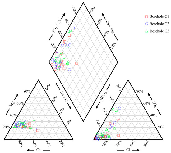 Piper diagram of pore water samples in three boreholes.