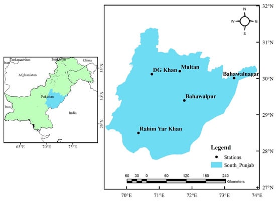 Location Map of South Punjab with Climatic Stations.