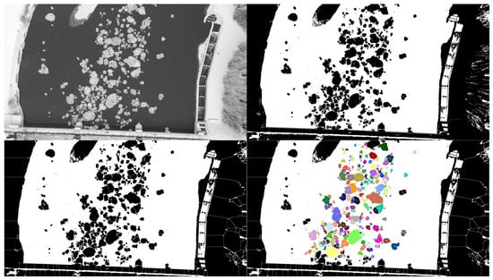 The very process of image processing, as well as the binarization, segmentation and analysis of components, depends on the computer’s computing power; however, with standard desktop PC hardware, it should not take more than 5 s using macro due to the larger dataset, making it possible to investigate how morphometrical parameters can be utilized in predicting ice blockages. The usage of a drone along with image processing software under an open license potentially provides an excellent tool for monitoring ice flow and the early detection of threats stemming from blockages in inland waterways.