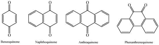 Structures of benzoquinone, naphthoquinone, anthraquinone, and phenanthrenequinone.