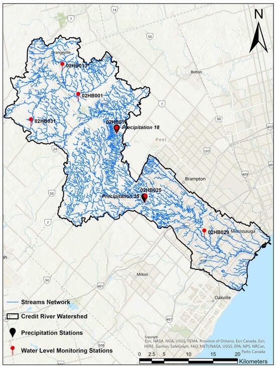 Located in Mississauga, Credit River’s station 02HB029 plays a pivotal role in flood forecasting for this bustling metropolitan area. Given that the Credit River courses directly through the heart of downtown Mississauga, accurately predicting the discharge in the southern part of the river is vital for safeguarding both lives and property. Although the real-time rainfall monitoring network in the Credit River watershed is limited, one precipitation monitor is situated near station 02HB025. With an aim to strike a balance between simplicity and precision in the flood forecasting system, we have incorporated the data from this precipitation monitor into the purview of our manuscript. Ideally, a flawless early flood forecasting system would harmonize the objectives of governmental bodies, affected residents, and the insurance sector, facilitating a shared understanding of flood loss implications. Considering the escalating trend of insured catastrophic losses annually, it is imperative that a highly accurate early flood forecasting system is available.