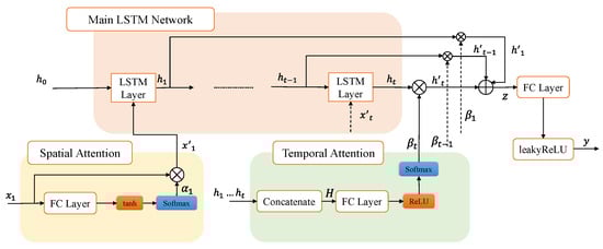 where is the result of the temporal attention part, z represents the summation of to , y shows the output of the model, and is the weight. The Leaky ReLU [74] activation function is used before output.