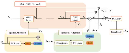 The STA-GRU model is meticulously crafted for spatiotemporal data processing too. Suited for complex datasets with overlapping spatial and temporal attributes. It retains the fundamental GRU mechanisms, notably the reset and update gates, ensuring effective sequence dependency tracking. Moreover, to augment its spatial pattern comprehension, STA-GRU may integrate sophisticated elements like FC layers or attention frameworks, as shown in Figure 5.