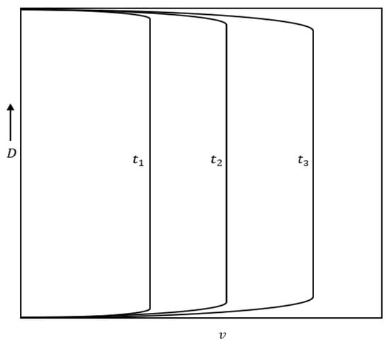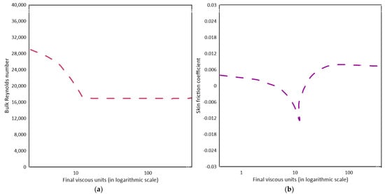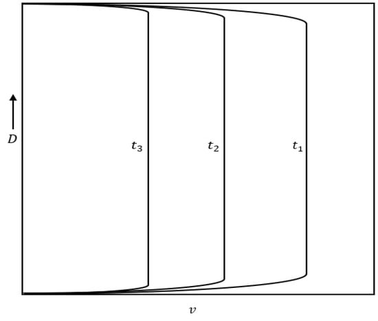 where is the inside diameter of the pipe, is the pipe length, is friction velocity dependent on the Darcy–Weisbach friction factor and the mean steady-state velocity, and is the speed of the wave. Based on the magnitude of the parameter , three regimes were observed by Ghidaoui et al. []. When , the steady-state flow’s structure and intensity of turbulence are identical to those of transient flow. This indicates that in these types of flows, the steady-state turbulence model remains valid. When , variations in the structure and intensity of turbulence during water hammer can be seen. There is sufficient time for the turbulence to propagate towards the centre of the pipe, thereby the viability of the steady-state turbulence models should be examined. When , the consequences of the water hammer are negligible.