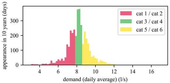 Distribution of total water demand from 10 years with a subdivision into the corresponding control category.