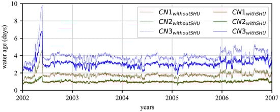Comparison of the water age for the three control nodes with and without an SHPU.