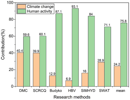The assessment of runoff change was conducted using six research methods to determine the respective contributions of climate change and human activities.