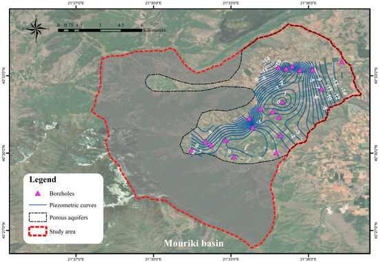 Variation in the piezometric head in the Mouriki basin between May 2004 and 2022.