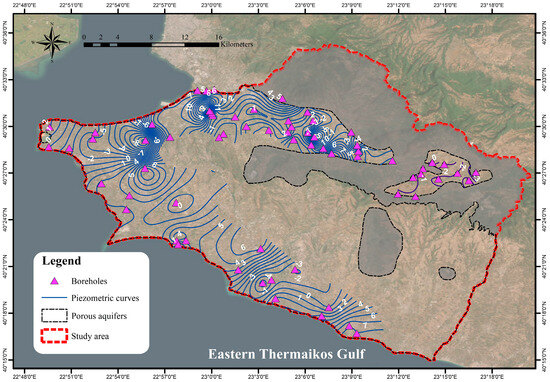 Variation in the piezometric head in Eastern Thermaikos Gulf between May 2011 and 2022.