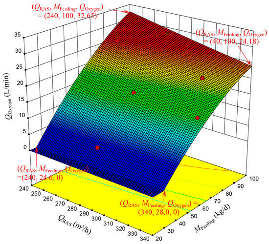| QRAS (m3/h) | QOxygen (L/min) | UROxygen (%) | QRAS (m3/h) | MFeeding (kg/d) | QOxygen (L/min) | ||