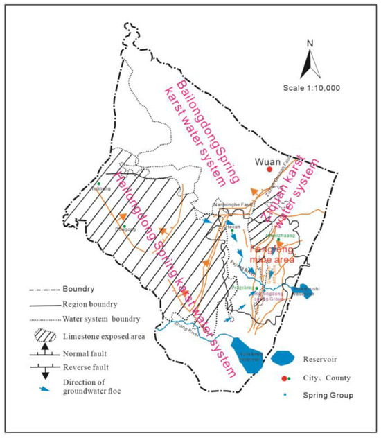 - Yan, Y.M.; Qin, P.; Wu, Z.L.; Bai, X.Q.; Shen, Z.H. Influence on the karst groundwater environment by coal mining in the Fengfeng coal mine area. China Min. Mag. 2010, 19, 120–125. [Google Scholar]