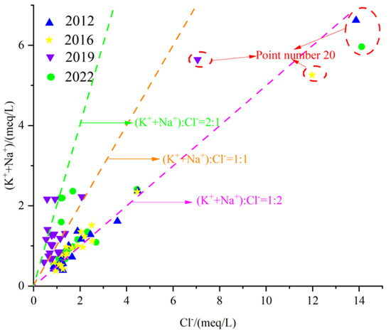 Scatter diagram of γ(Na+ + K+)/γCl−.