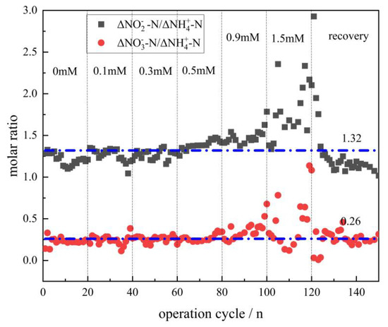 2.3.2. Substrate Degradation Rate of Anammox Analysis