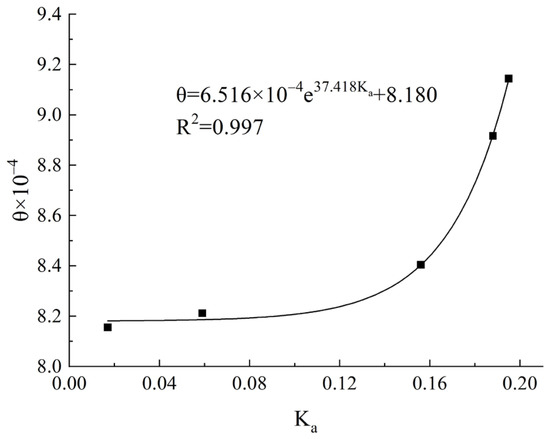 The correction coefficient θ has an obvious functional relationship with Ka, that θ increases exponentially with Ka (Figure 11). This was because the shale had the structural characteristics of thin layers. In this test, the shale fracture was made by splitting along the direction of its layered structure, which made the fracture surface relatively flat and the upper and lower fracture surfaces well matched. The roughness distribution of the fracture surface directly affected the flow conductivity of the fracture. The larger the Ka, the more uneven the roughness distribution, the more flow channels generated, and the greater the flow conductivity. When the difference in roughness distribution was small, Ka had little effect on the flow conductivity; when the difference was large, there might have been more flow channels, and the influence of Ka on the flow conductivity was more obvious. For a specific shale fracture, the correction coefficient θ would be roughly determined via the function relationship so as to describe the relationship between the seepage discharge of shale fractures and the mechanical aperture. However, it should be noted that due to the limitation of the number of samples, the exact relationship between the correction coefficient θ and the fracture surface topography would need to be further explored.