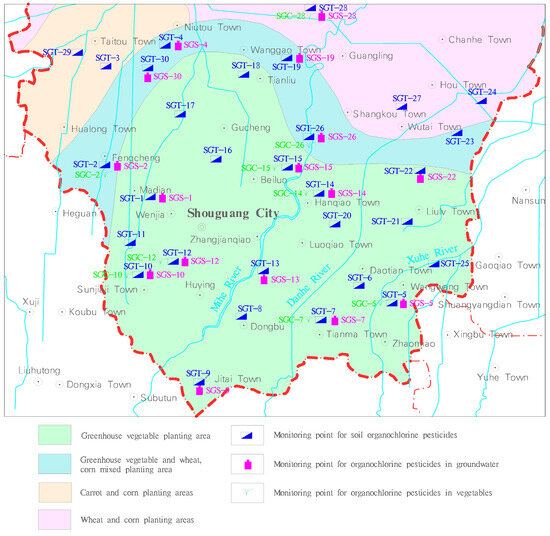 Shouguang City has a long history of vegetable cultivation. Being a famous hometown of vegetables in China, it is a comprehensive national commodity base for grain, vegetables, fruits, cotton, aquatic products and animal husbandry. In recent decades, with the expansion of agricultural production, the use of pesticides has increased. Although the OCPs have been banned, there is still some residue in soil, groundwater and other media.