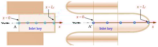In the engineering applications illustrated by Schleiss [33], one often sees overflow spillways with duckbill-, bathtub-, and fan-shaped crests for attaining high flow discharges. To obtain a longer overflow crest length, the straight apex of either overhang in the reference weir is replaced with a rounded or an ogival form. With such a crest form, the key floors are accordingly adapted, thus forming an improved configuration.