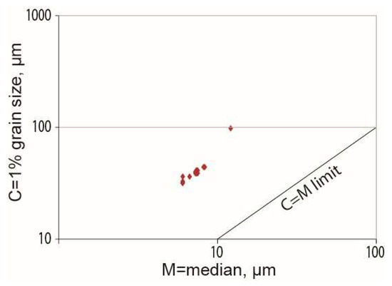 CM plot (logarithmic scale) of grain size data.