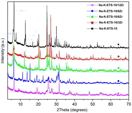 3.1. Physicochemical Characterization of Na-K-ETS-10/xZr Form