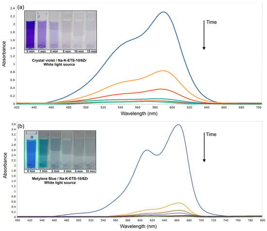 APA StyleLazarova, H., Rusew, R., Iliev, K., Tsvetanova, L., Barbov, B., & Shivachev, B. (2023). Photodegradation of Methylene Blue and Crystal Violet by Zr-Modified Engelhard Titanium Silicate 10. Water, 15(23), 4186. https://doi.org/10.3390/w15234186