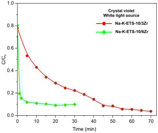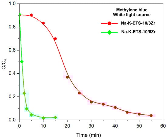 Lazarova, H.; Rusew, R.; Iliev, K.; Tsvetanova, L.; Barbov, B.; Shivachev, B. Photodegradation of Methylene Blue and Crystal Violet by Zr-Modified Engelhard Titanium Silicate 10. Water 2023, 15, 4186. https://doi.org/10.3390/w15234186