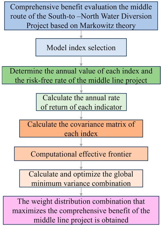 Flow chart of comprehensive benefit evaluation for the middle route of the South-to-North Water Diversion Project based on Markowitz theory.