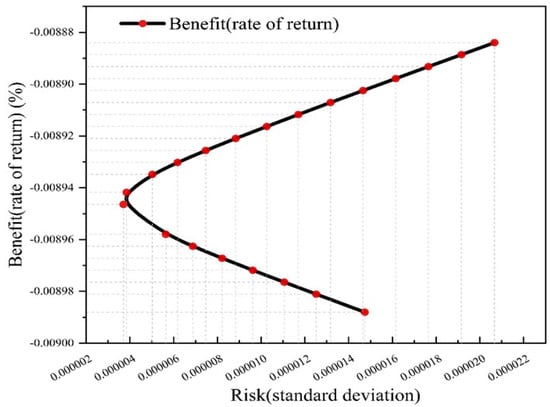 The effective frontier is calculated according to Formulas (8)–(10), and the results are shown in Figure 4.