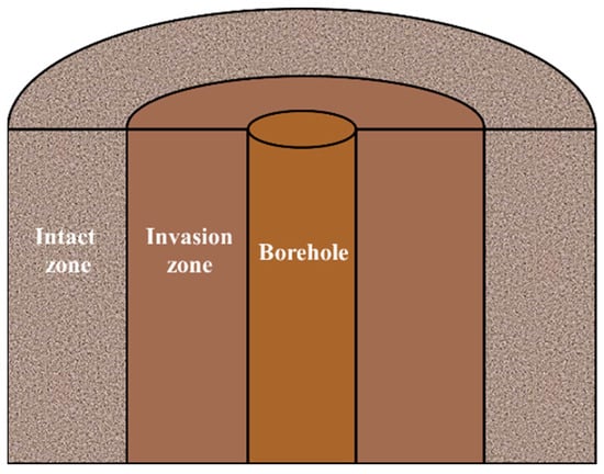 A three-layer medium model, as shown in Figure 4, is established to incorporate the effect of drilling mud. This approach aims to obtain a DOI that is as accurate as possible in actual logging environments. Δ φ a , Δ φ i , and Δ φ t all contain the response signal of drilling mud.