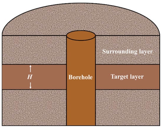 Figure 6. The three-layer formation model with a wellbore. The logging depth of the target layer center is 0 m.