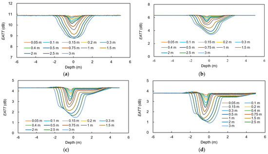 Figure 9. EATT curves to three-layer formation model at a frequency of 8 MHz of the single-transmission dual-reception coil systems with different DOI: (a) 0.3 m; (b) 0.5 m; (c) 1 m; (d) 1.5 m.