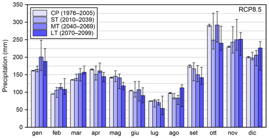 - Vezzoli, R.; Mercogliano, P.; Pecora, S.; Zollo, A.L.; Cacciamani, C. Hydrological Simulation of Po River (North Italy) Discharge under Climate Change Scenarios Using the RCM COSMO-CLM. Sci. Total Environ. 2015, 521–522, 346–358. [Google Scholar] [CrossRef] [PubMed]