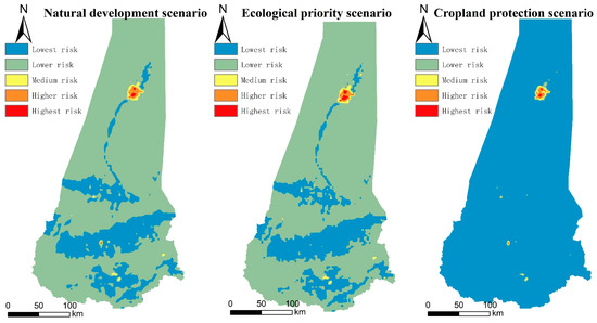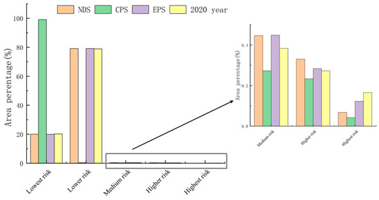 Percentage of area in the ecological risk class of the KRB landscape under different scenarios.